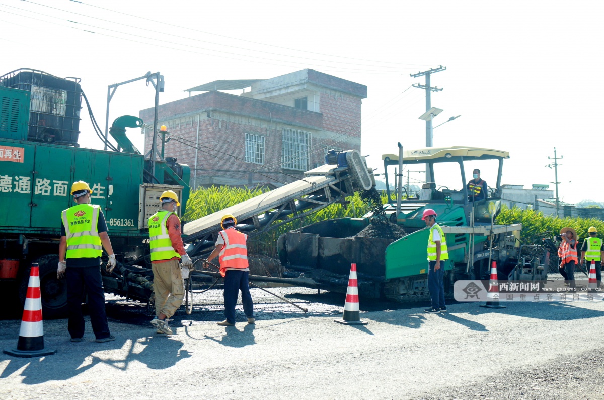 平南县马练乡S204线芳田村至古硫村路段选用的德通路面列车泡沫沥青就地冷再生技能施工现场。通讯员 冯俊铭 唐周杰 摄